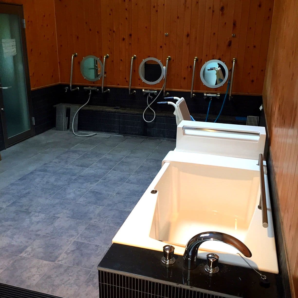 上下合わせて14ヵ所・2種類の特殊ノズルから噴射されるシャワーはマッサージのような効果があり、血行の促進や新陳代謝の活性化につながります。保温性も非常に高く、利用者様からは、「身体の芯から温まり、お湯に浸かるより数段気持ちいい」との声も寄せられています。