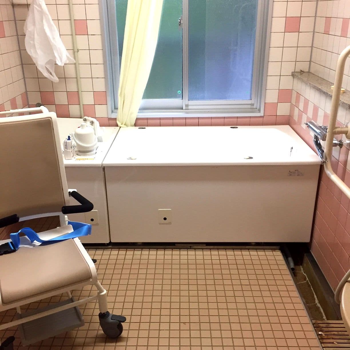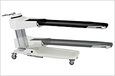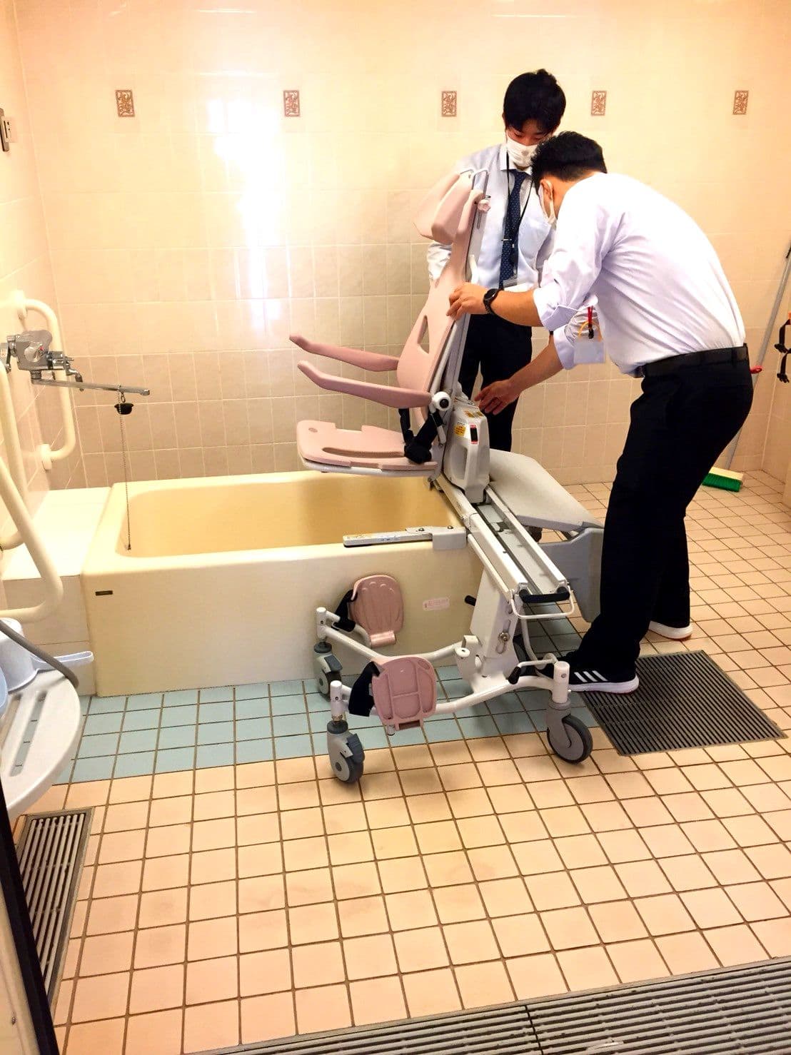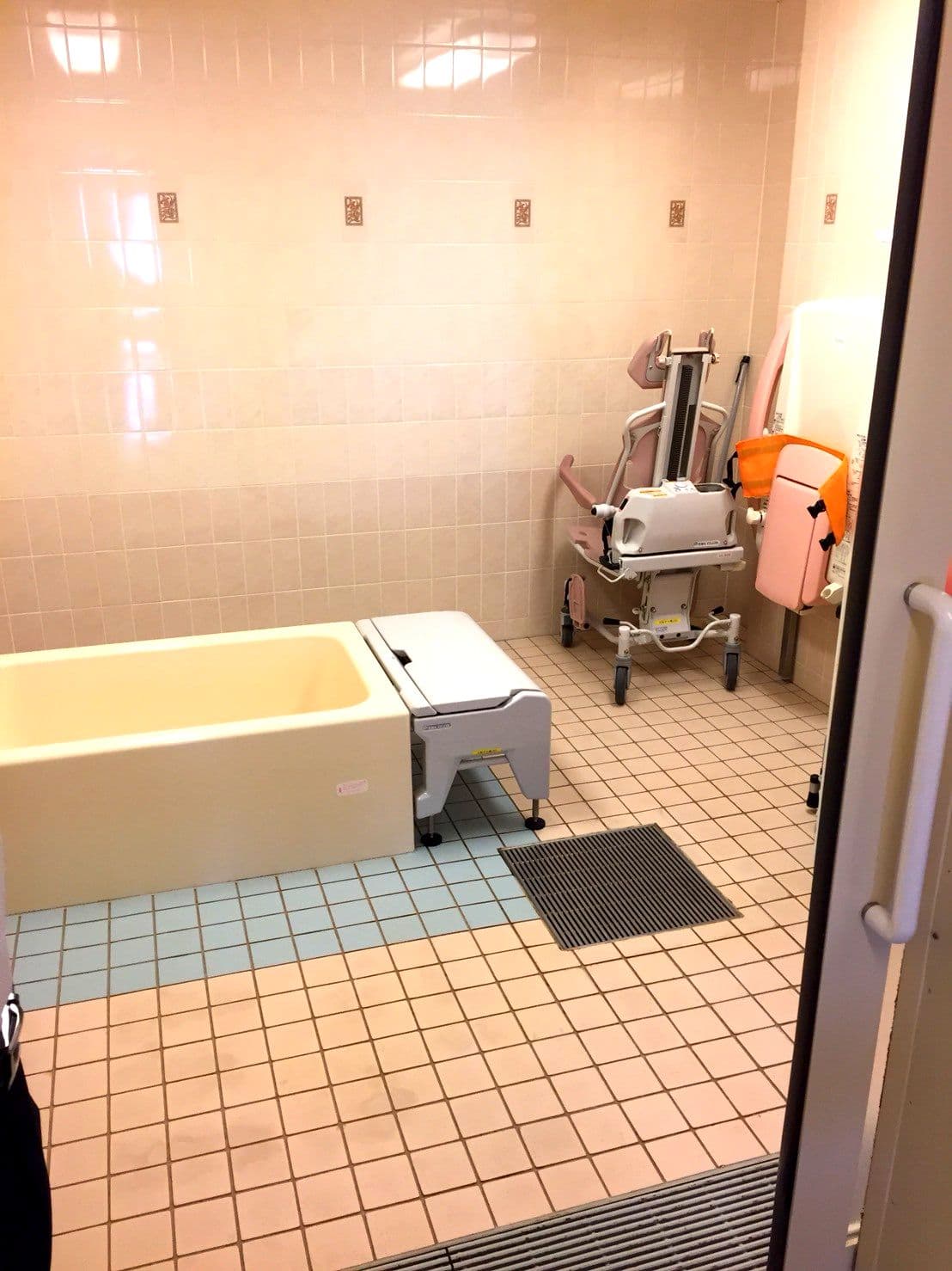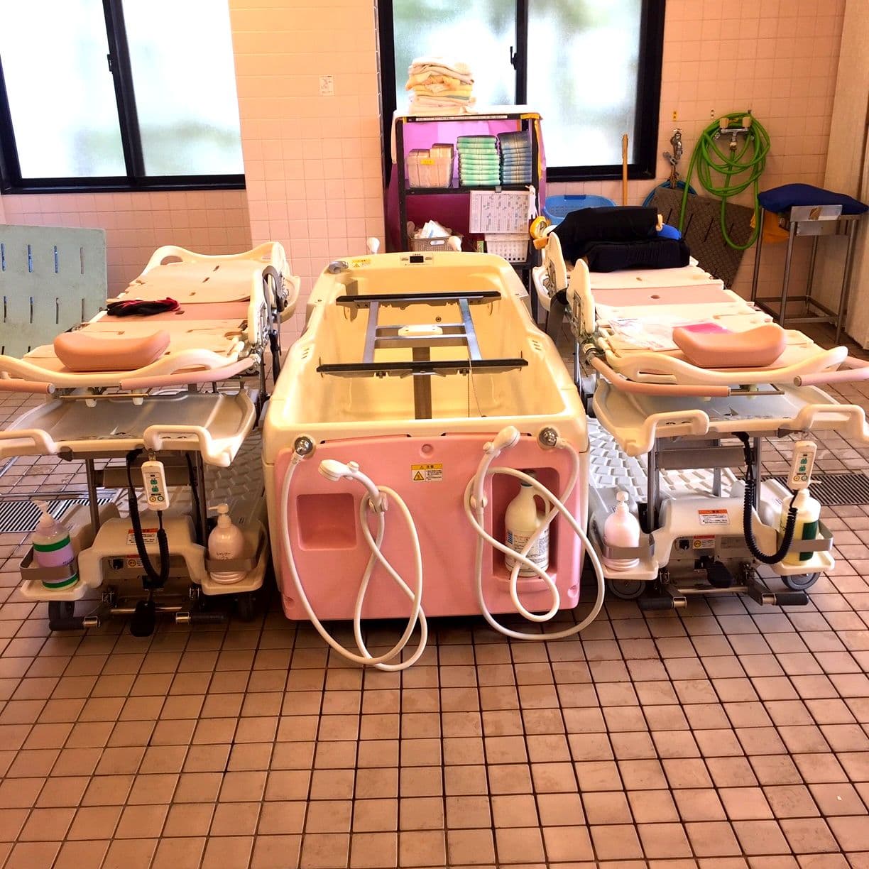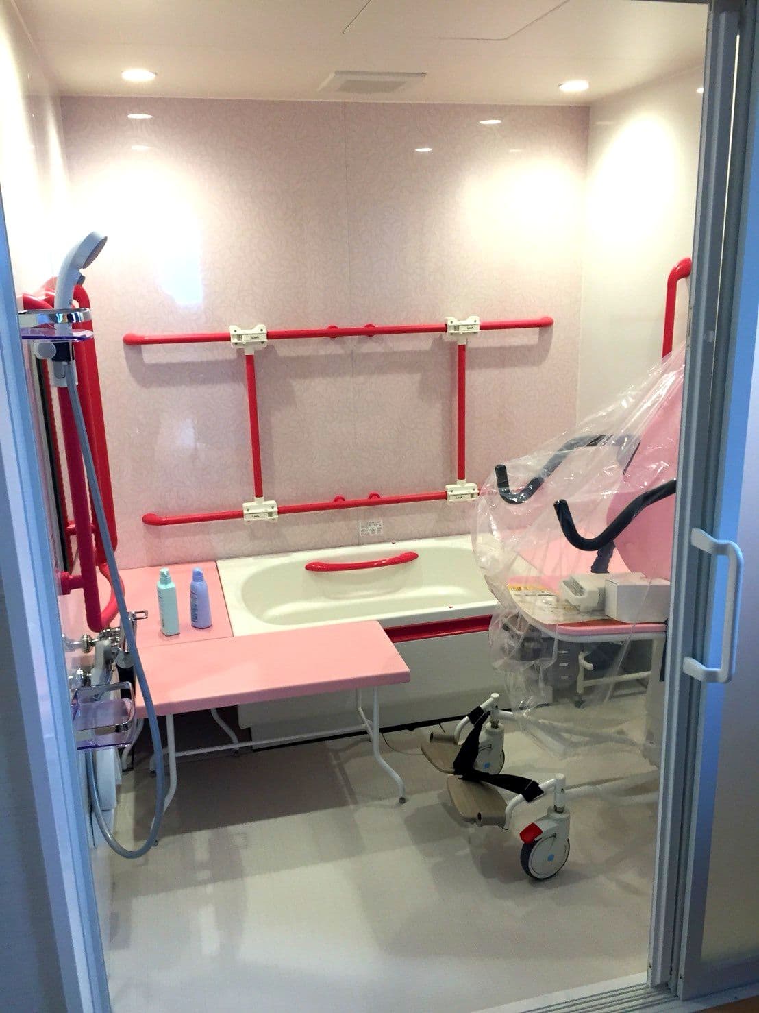 低床ベッド・車椅子・ストレッチャーからの移乗がしやすく、介護もしやすいように、電動昇降ストレッチャーの高さは43㎝から90㎝まで調整できます。ストレッチャーに寝た状態で入浴するので、寝たきりの方にも対応できます。