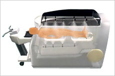また、シャワーには常に新しいお湯を使用するので、交差感染や汚染(皮膚疾患・失禁・脱糞など)対応が容易に行えます。ストレッチャーだけを本体に入れて洗浄、薬液噴射も可能です。
